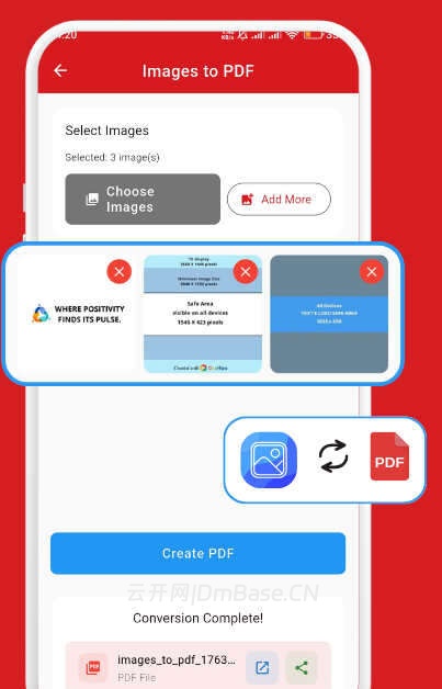 图片转PDF:轻松将多张照片或图片合并、排序,生成专业的PDF文档。
