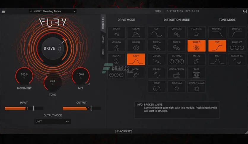Heavyocity Fury(全名 Fury Distortion Designer)是 Heavyocity 推出的一款高级失真效果插件,用于音频制作中的失真与饱和处理。它既适合微妙的暖化色彩,也能实现极端破坏性的失真效果,是音乐制作人、声音设计师和混音工程师的重要创意工具。