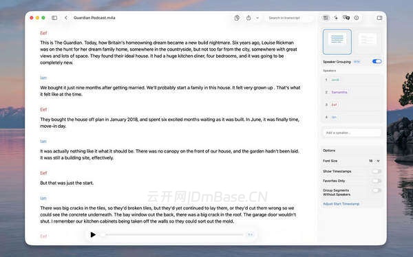 – 通过添加每个演讲者的音频文件来转录播客,生成的转录将按演讲者分开。