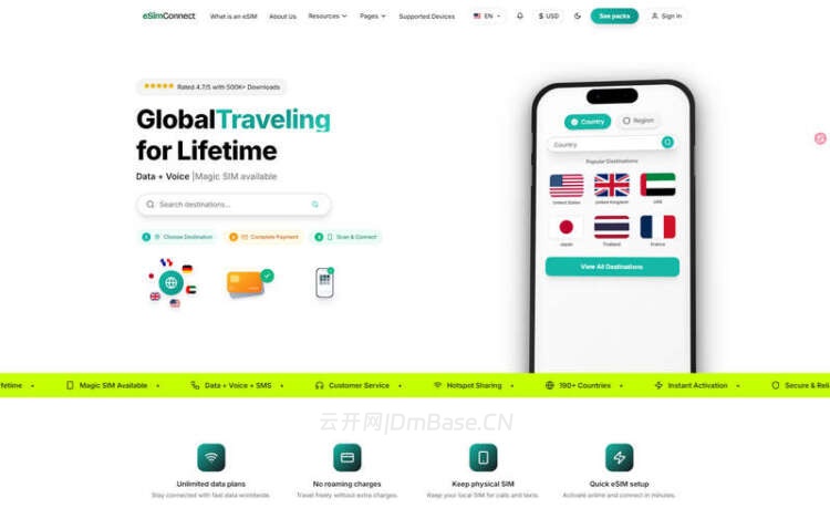 通过API对接,商家可以直接获取全球通信套餐资源,并以具有竞争力的价格进行分销与销售。