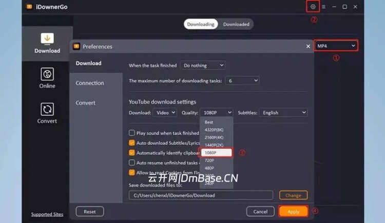 iDownerGo Pro的一大亮点是支持超高清内容下载,可保存不同分辨率的视频资源: