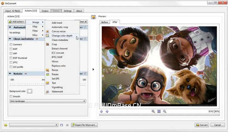 XnConvert 支持市面上所有常用图片和图形格式,包括 JPEG、TIFF、PNG、GIF、WEBP、PSD、JPEG2000、OpenEXR、相机 RAW、HEIC、PDF、DNG、CR2 等,让用户无需担心格式兼容问题。