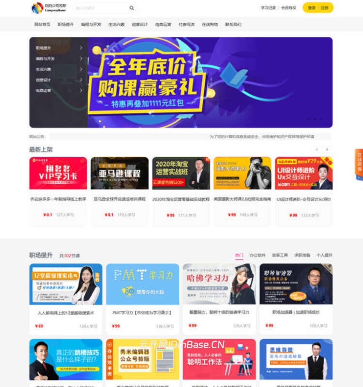 此外,系统内置全站搜索功能,帮助用户快速定位所需课程;支持多套模板切换,企业可根据品牌调性自由更换界面风格。